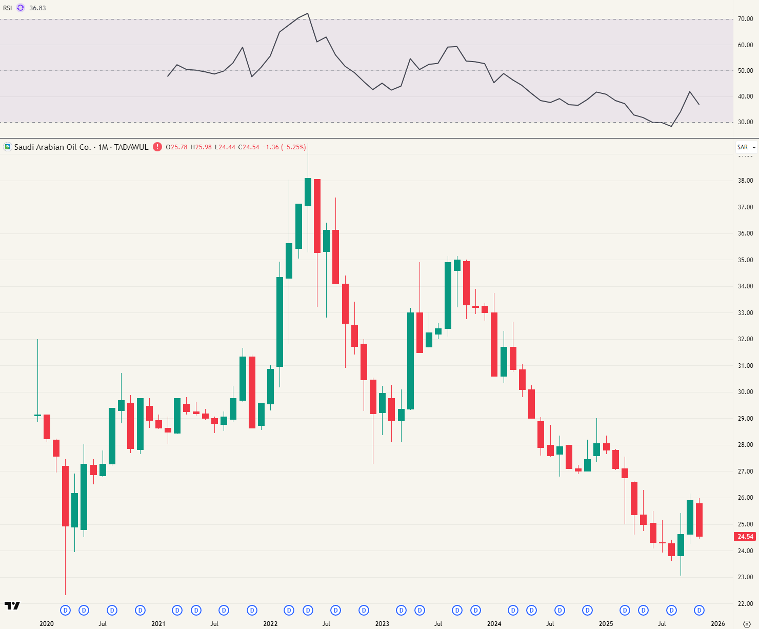 Hoe negatief? Saudi Aramco, het staatsoliebedrijf en grootste olieproducent ter wereld, noteert op een koers waar het ook stond in maart en april 2020, in volle lockdown.
